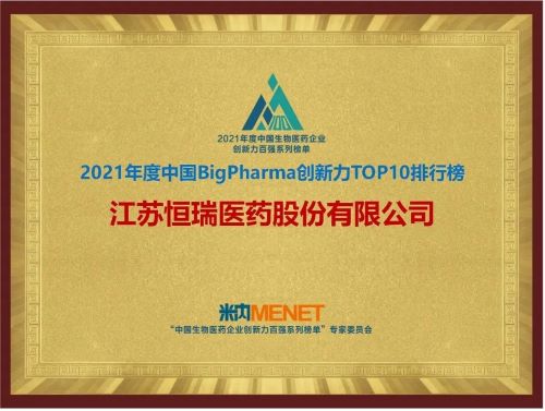 9月16日,由米内网主办的“2021年度中国生物医药企业创新力百强系列榜单”发布会在线上举办。凯发娱乐医药继去年登顶“中国BigPharma企业创新力TOP10排行榜”后,今年再次名列该榜单首位。