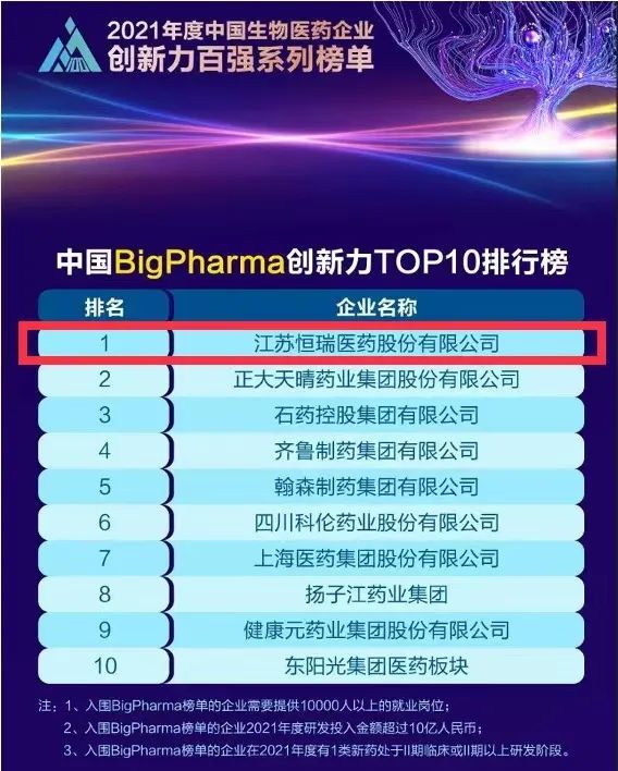 蝉联榜首!凯发娱乐医药再次登顶“中国BigPharma企业创新力TOP10排行榜”